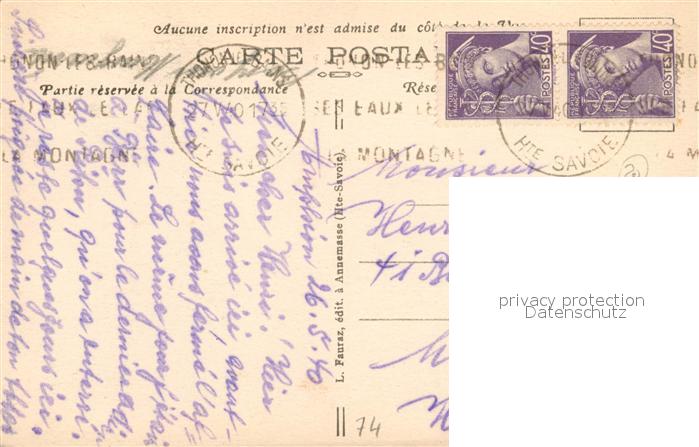13492068 carte postale Thonon-les-Bains Départ d un vapeur postalisch gelaufen Erhaltung siehe scans [FriedD77] KatCode: 11170074474281