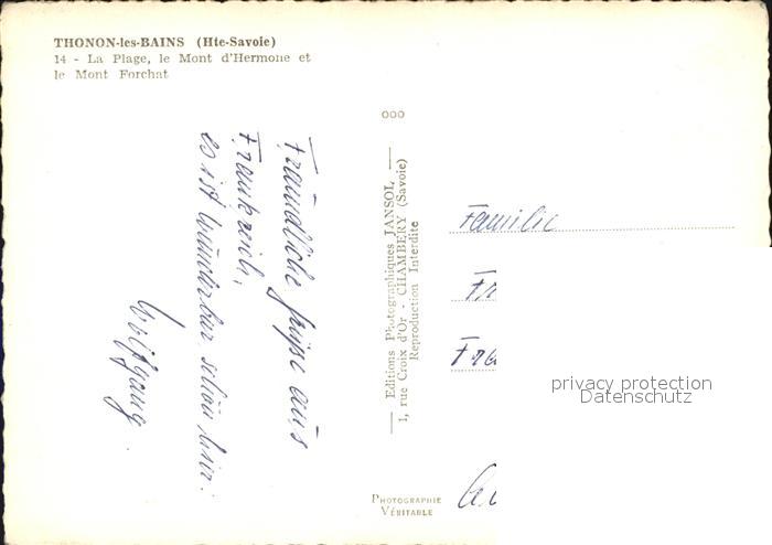 12509828 Thonon-les-Bains Hafen Mont Hermone Forchet postalisch nicht gelaufen Erhaltung siehe scans KatCode: 11170074474281