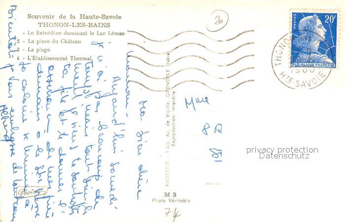 13492724 carte postale Thonon-les-Bains Hotel Le Belvedere Place du Chateau Plage Lac Leman Etablissement Thermal postalisch gelaufen Erhaltung siehe scans [FriedD77] KatCode: 11170074474281