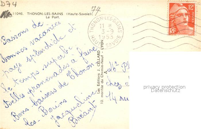 13574529 carte postale Thonon-les-Bains Le Port postalisch gelaufen Erhaltung siehe scans [WerneD78] KatCode: 11170074474281