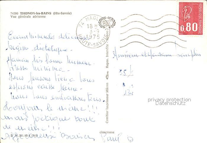 12154754 carte postale Thonon-les-Bains Vue generale aerienne postalisch gelaufen Erhaltung siehe scans KatCode: 11170074474281