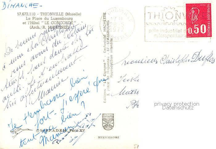 13793428 Thonville Place du Luxembourg Hôtel le Concorde postalisch gelaufen Erhaltung siehe scans [FriedD77] carte postale Frie Katcode 11170057157673
