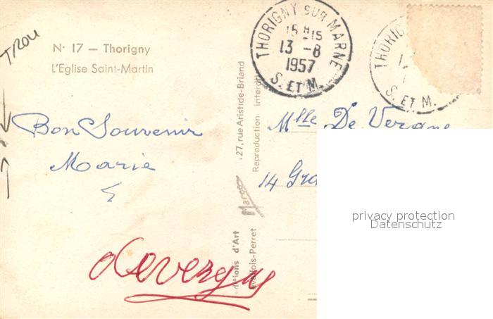 13535262 carte postale Thorigny-sur-Marne Eglise Saint Martin postalisch gelaufen Erhaltung siehe scans [FriedD77] KatCode: 11170077577464