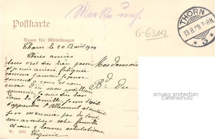 old postcard Thorn Westpreussen Torun Weichselbruecke postalisch gelaufen Erhaltung siehe scans [WerneD78]