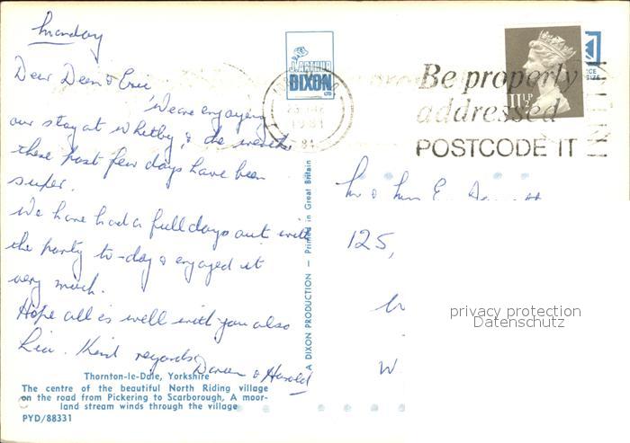 old postcard Thornton Dale Ortspartie postalisch gelaufen Erhaltung siehe scans