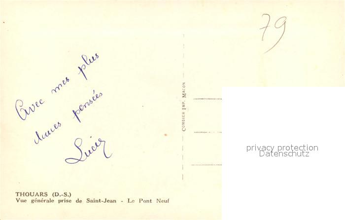13570746 Thouars Deux-Sevres Pont Neuf postalisch nicht gelaufen Erhaltung siehe scans [PaolaD17] KatCode: 11170079179329