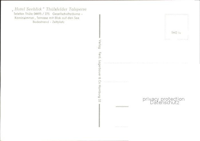 72052971 Thuele Friesoythe Hotel Seeblick Restaurant Thuelsfelder Talsperre Duenen Camping postalisch nicht gelaufen Erhaltung siehe scans KatCode: 11110003453007
