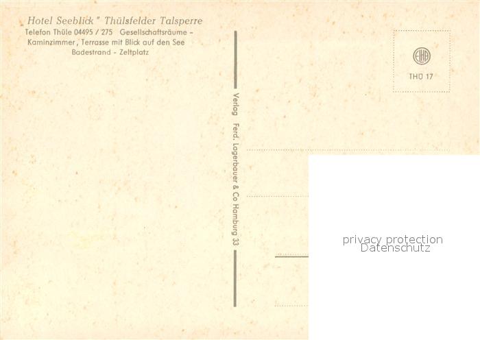 73687262 Thuele Friesoythe Hotel Seeblick Thuelsfelder Talsperre Campingplatz Landschaftspanorama postalisch nicht gelaufen Erhaltung siehe scans [FriedD77] KatCode: 11110003453007