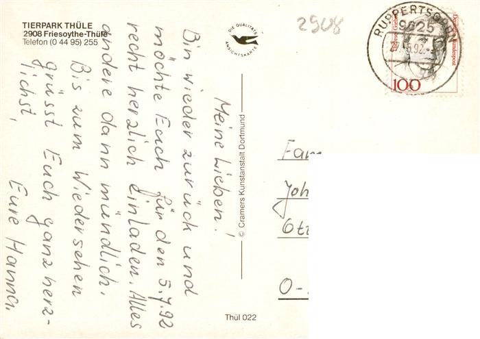 73930972 alte Postkarte Thuele Friesoythe Tierpark Teilansichten postalisch gelaufen Erhaltung siehe scans [WerneD78] KatCode: 11110003453007