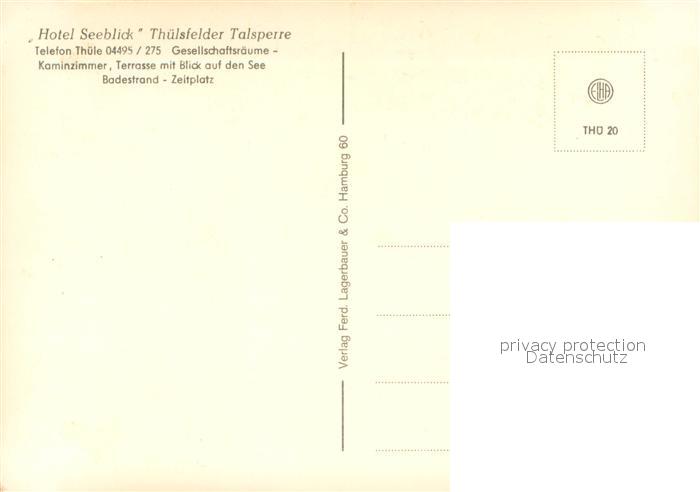 73651999 Thuelsfelder Talsperre Hotel Seeblick Kaminzimmer Terrasse Badestraende Zeltplatz postalisch nicht gelaufen Erhaltung siehe scans [WerneD78] KatCode: 11110003453004