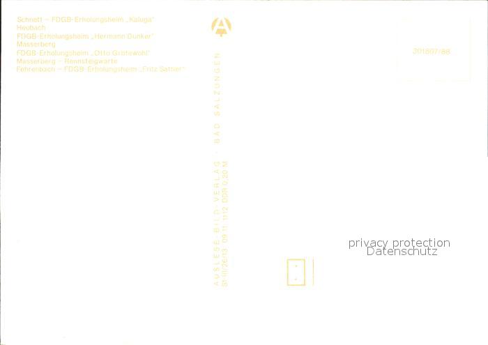72249256 Thueringen Region FDGB Erholungsheime Kaluga Heubach Hermann Dunker und Otto Grotewohl Masserberg Fritz Sattler Fehrenbach postalisch nicht gelaufen Erhaltung siehe scans KatCode: 11110016051000