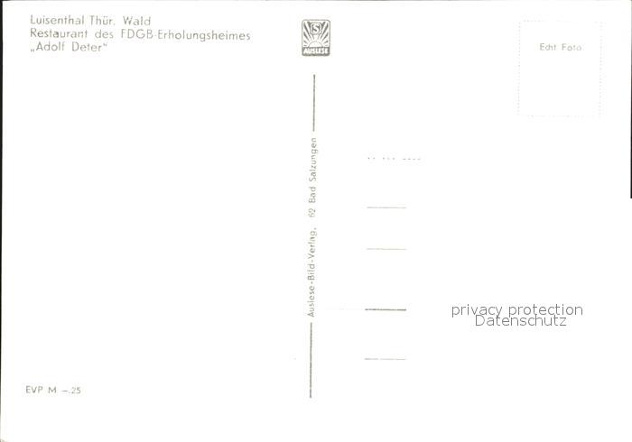 72395887 Thueringen Region Luisenthal Restaurant FDGB Erholungsheim Adolf Deter postalisch nicht gelaufen Erhaltung siehe scans KatCode: 11110016051000