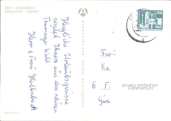 72483572 alte Postkarte Thueringen Region mit Floh Schnellbach Seligenthal Asbach postalisch gelaufen Erhaltung siehe scans KatCode: 11110016051000