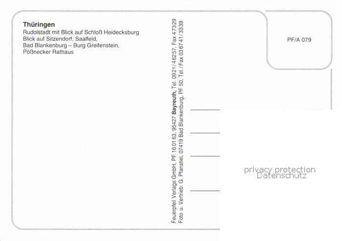 72846154 Thueringen Region Rudolstadt Schloss Heidecksburg Sitzendorf Saalfeld Bad Blankenburg Burg Grafenstein Poessnecker Rathaus Wappen postalisch nicht gelaufen Erhaltung siehe scans [FriedD77] KatCode: 11110016051000