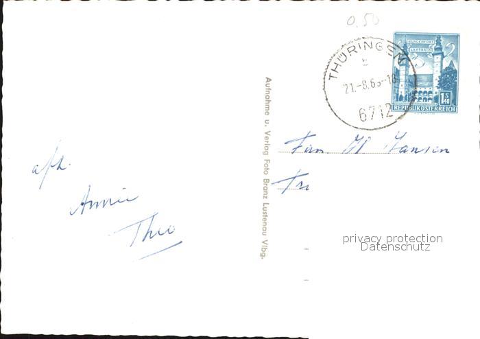 72453874 alte Postkarte Thueringen Vorarlberg Ortsansicht mit Kirche Alpen postalisch gelaufen Erhaltung siehe scans KatCode: 11390341080126