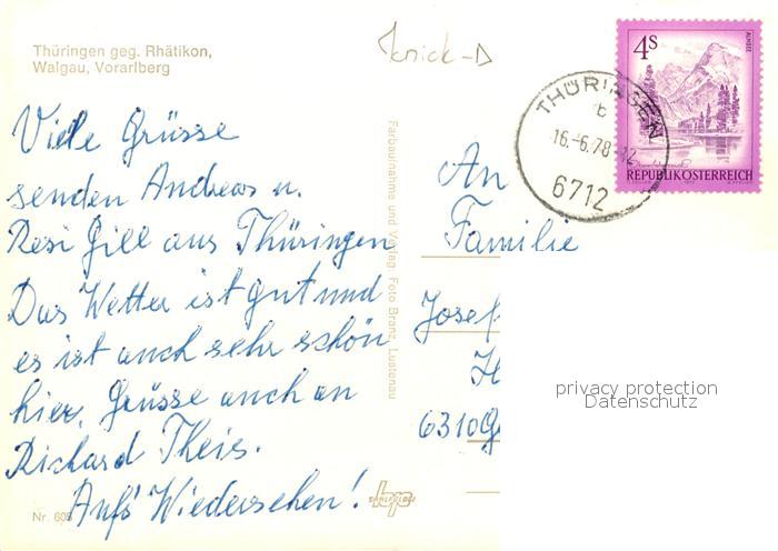 73227053 alte Postkarte Thueringen Vorarlberg Panorama Blick gegen Rhaetikon Walgau postalisch gelaufen Erhaltung siehe scans [FriedD77] KatCode: 11390341080126