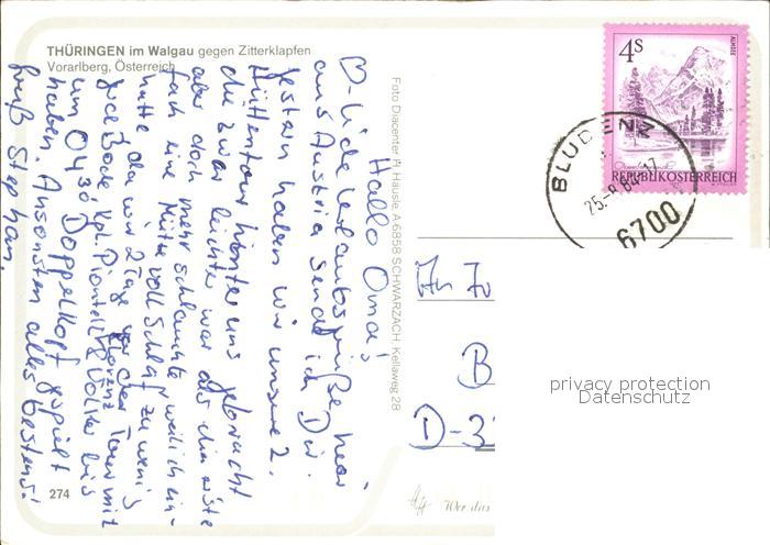 72207465 alte Postkarte Thueringen Vorarlberg Panorama mit Zitterklapfen postalisch gelaufen Erhaltung siehe scans KatCode: 11390341080126