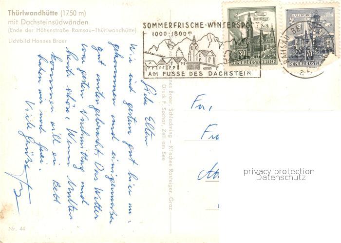 73054669 alte Postkarte Thuerlwandhuette Dachsteinsuedwaenden postalisch gelaufen Erhaltung siehe scans [NatalD47] KatCode: 11390222061236
