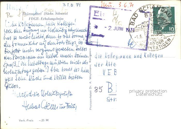72365630 alte Postkarte Thuermsdorf FDGB Erholungsheim postalisch gelaufen Erhaltung siehe scans KatCode: 11110014287400