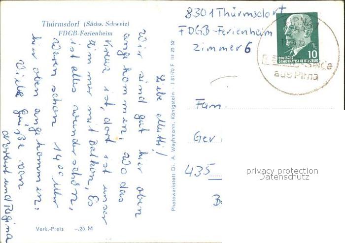 71989672 alte Postkarte Thuermsdorf FDGB Ferienheim postalisch gelaufen Erhaltung siehe scans KatCode: 11110014287400