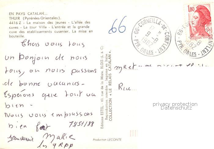 13516814 carte postale Thuir La tour Villa Bierabfuellung postalisch gelaufen Erhaltung siehe scans [KathaD81] KatCode: 11170066266210