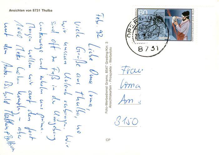 73879520 alte Postkarte Thulba Panorama Schloss Partie am Wasser postalisch gelaufen Erhaltung siehe scans [FriedD77] KatCode: 11110009672139