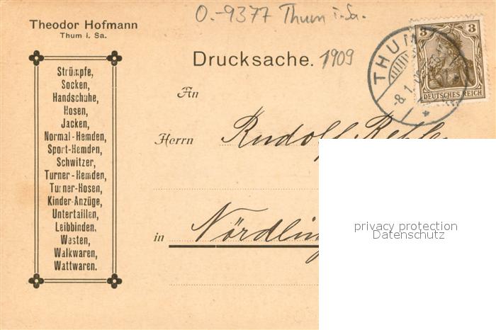 73709181 alte Postkarte Thum Erzgebirge Theodor Hoffmann Kleidungswaren Bestellungsbestaetigung postalisch gelaufen Keine Postkarte (siehe scan) Erhaltung siehe scans [LiesaD40] KatCode: 11110014171320