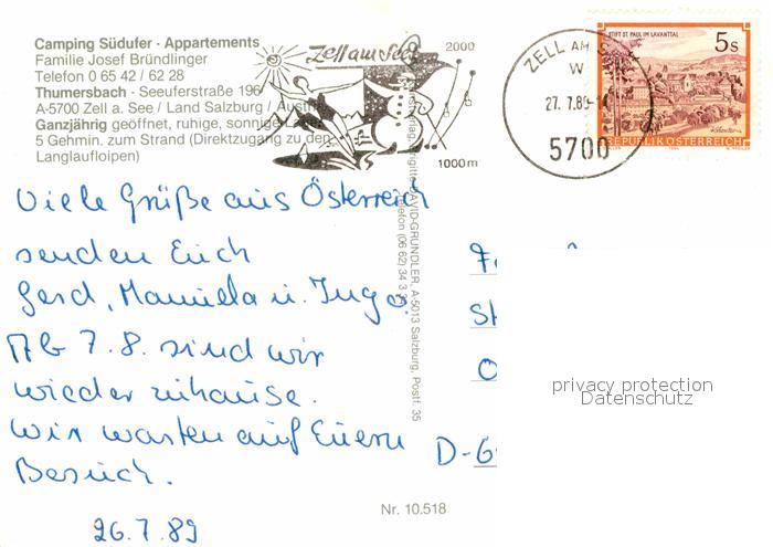 72901724 alte Postkarte Thumersbach Camping Suedufer Appartements Kitzsteinhorn Hohe Tauern postalisch gelaufen Erhaltung siehe scans [FriedD77] KatCode: 11390322050628