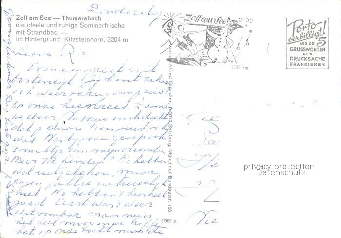 72092311 alte Postkarte Thumersbach Panorama mit Strandbad und Kitzsteinhorn postalisch gelaufen KatCode: 11390322050628