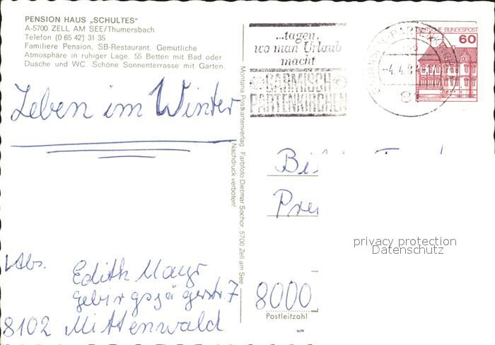 72478811 alte Postkarte Thumersbach Pension Haus Schultes postalisch gelaufen Erhaltung siehe scans KatCode: 11390322050628