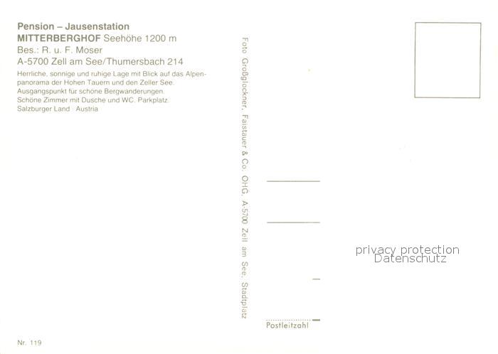 73591774 Thumersbach Pension Jausenstation Mitterberghof Panorama Zeller See Hohe Tauern postalisch nicht gelaufen Erhaltung siehe scans [FriedD77] KatCode: 11390322050628