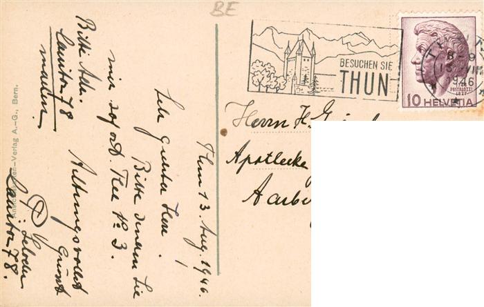 13921461 alte Postkarte Thun BE Alte Schleusenbruecke postalisch gelaufen Erhaltung siehe scans [FriedD77] KatCode: 11470060240806
