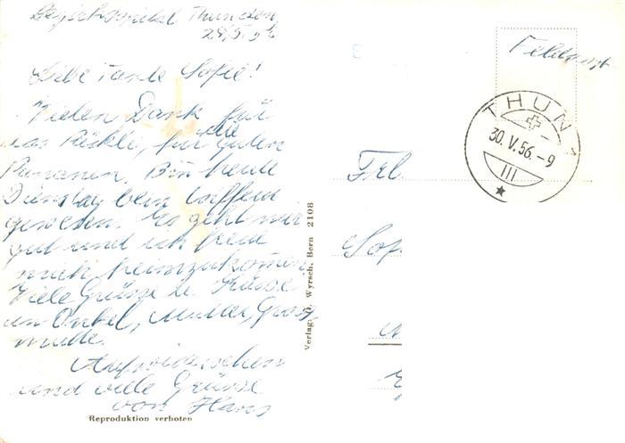 13874720 alte Postkarte Thun BE Fliegeraufnahme mit Bezirks Spital postalisch gelaufen Erhaltung siehe scans [WerneD78] KatCode: 11470060240806