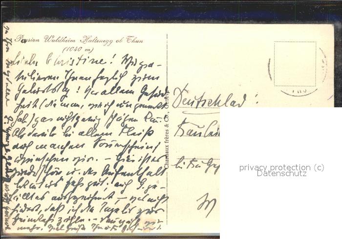 11498558 alte Postkarte Thun BE Pension Waldheim Kaltenegg Panorama postalisch gelaufen Erhaltung siehe scans KatCode: 11470060240806