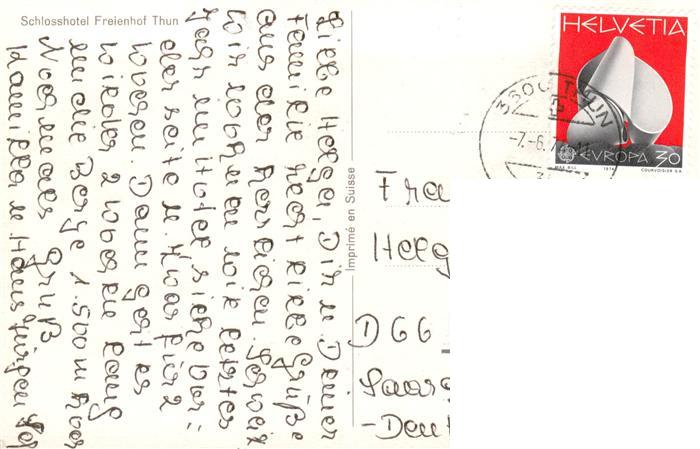 13904577 alte Postkarte Thun BE Schlosshotel Ferienhof Thun postalisch gelaufen Erhaltung siehe scans [FriedD77] KatCode: 11470060240806