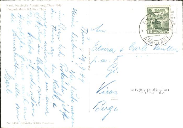 11640020 alte Postkarte Thun KABA Ausstellung Fliegeraufnahme postalisch gelaufen Erhaltung siehe scans KatCode: 11470060240806