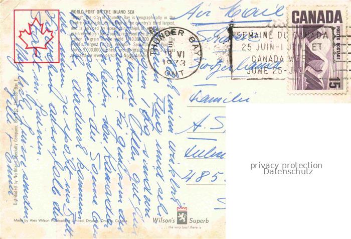 74091674 old postcard Thunder Bay Lake Superior Ontario Canada World Port on the Inland Sea postalisch gelaufen Erhaltung siehe scans [IrynaD87] KatCode: 14110