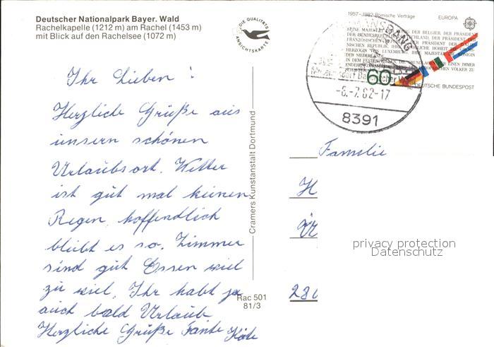 72390249 alte Postkarte Thurmansbang Deutscher Nationalpark Rachelkapelle Rachelsee postalisch gelaufen Erhaltung siehe scans KatCode: 11110009272150