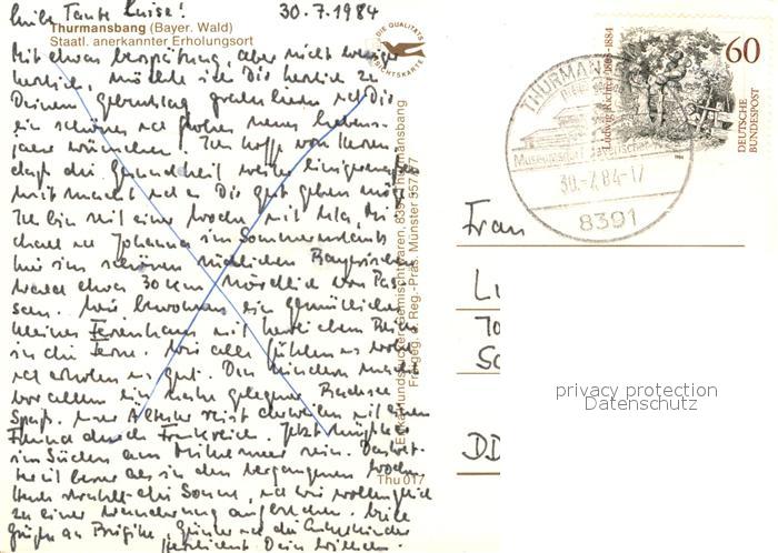 73175120 alte Postkarte Thurmansbang Erholungsort Bayerischer Wald Fliegeraufnahme postalisch gelaufen Erhaltung siehe scans [FriedD77] KatCode: 11110009272150