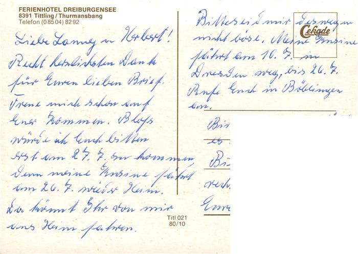 73904827 Thurmansbang Ferienhotel Dreiburgensee postalisch nicht gelaufen Erhaltung siehe scans [FriedD77] KatCode: 11110009272150