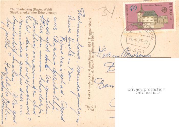 73644784 alte Postkarte Thurmansbang Fliegeraufnahme postalisch gelaufen Erhaltung siehe scans [WerneD78] KatCode: 11110009272150