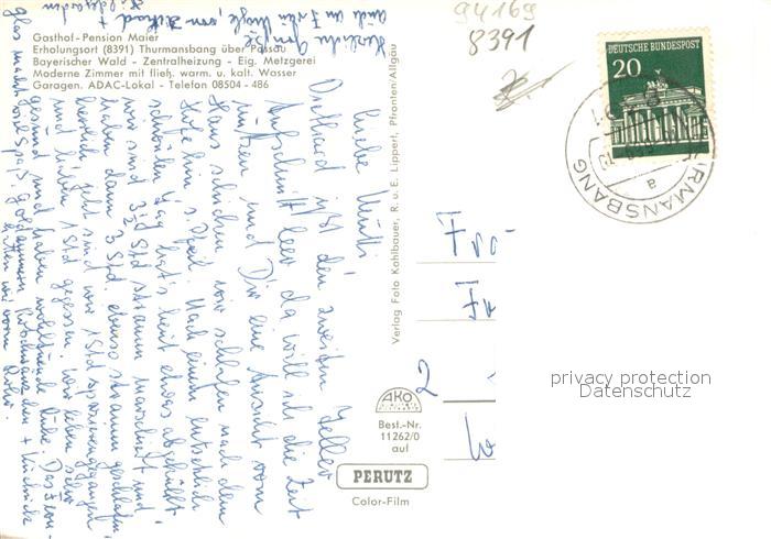 73662651 alte Postkarte Thurmansbang Gasthof Pension Maier Erholungsort Bayerischer Wald postalisch gelaufen Erhaltung siehe scans [FriedD77] KatCode: 11110009272150