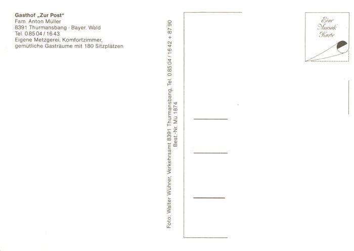 73877910 Thurmansbang Gasthof Zur Post Gastraeume Damhirsch Panorama postalisch nicht gelaufen Erhaltung siehe scans [WerneD78] KatCode: 11110009272150