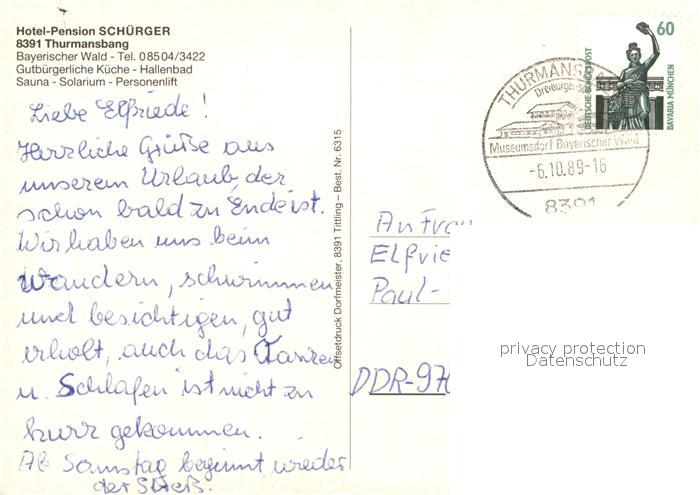 73047542 alte Postkarte Thurmansbang Hotel Pension Schuerger Gastraum Schwimmbad postalisch gelaufen Erhaltung siehe scans [WerneD78] KatCode: 11110009272150