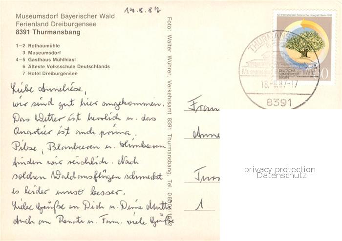 73163679 alte Postkarte Thurmansbang Museumsdorf Bayerischer Wald Ferienland Dreiburgensee postalisch gelaufen Erhaltung siehe scans [FriedD77] KatCode: 11110009272150