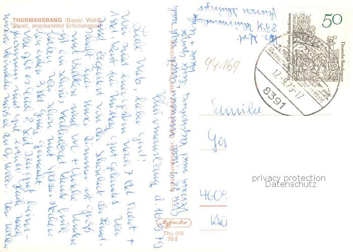 73864860 alte Postkarte Thurmansbang Panorama Erholungsort Bayerischer Wald postalisch gelaufen Erhaltung siehe scans [FriedD77] KatCode: 11110009272150