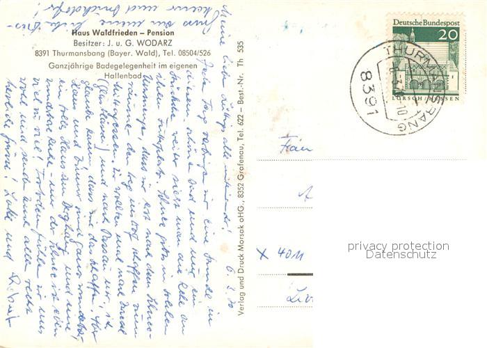 73655637 alte Postkarte Thurmansbang Pension Haus Waldfrieden Hallenbad postalisch gelaufen Erhaltung siehe scans [FriedD77] KatCode: 11110009272150