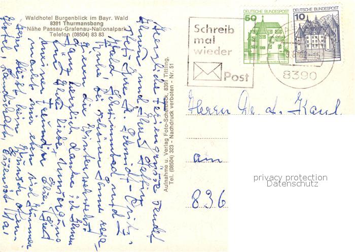 73160649 alte Postkarte Thurmansbang Waldhotel Burgenblick im Bayerischen Wald postalisch gelaufen Erhaltung siehe scans [FriedD77] KatCode: 11110009272150