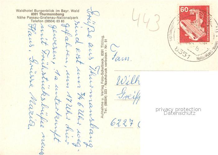 73650950 alte Postkarte Thurmansbang Waldhotel Burgenblick postalisch gelaufen Erhaltung siehe scans [WerneD78] KatCode: 11110009272150