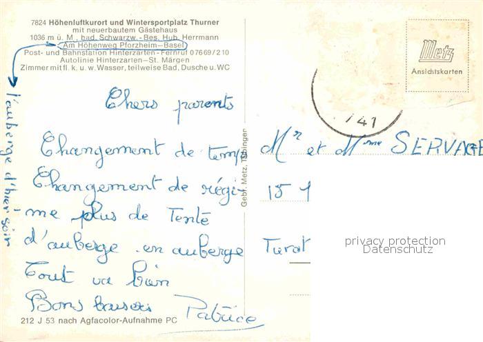 72757453 alte Postkarte Thurner Gaestehaus postalisch gelaufen Erhaltung siehe scans [KathaD81] KatCode: 11110008315094